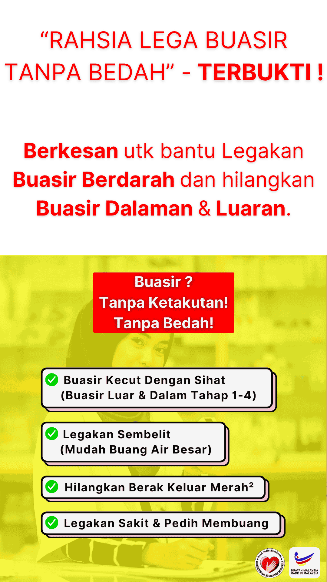 Boleh tiada masalah. AmaHerbs Buasir juga sangat sesuai untuk legakan masalah sembelit, susah nak membuang, 2-3 hari baru membuang atau sakit & pedih setiap kali nak membuang.
